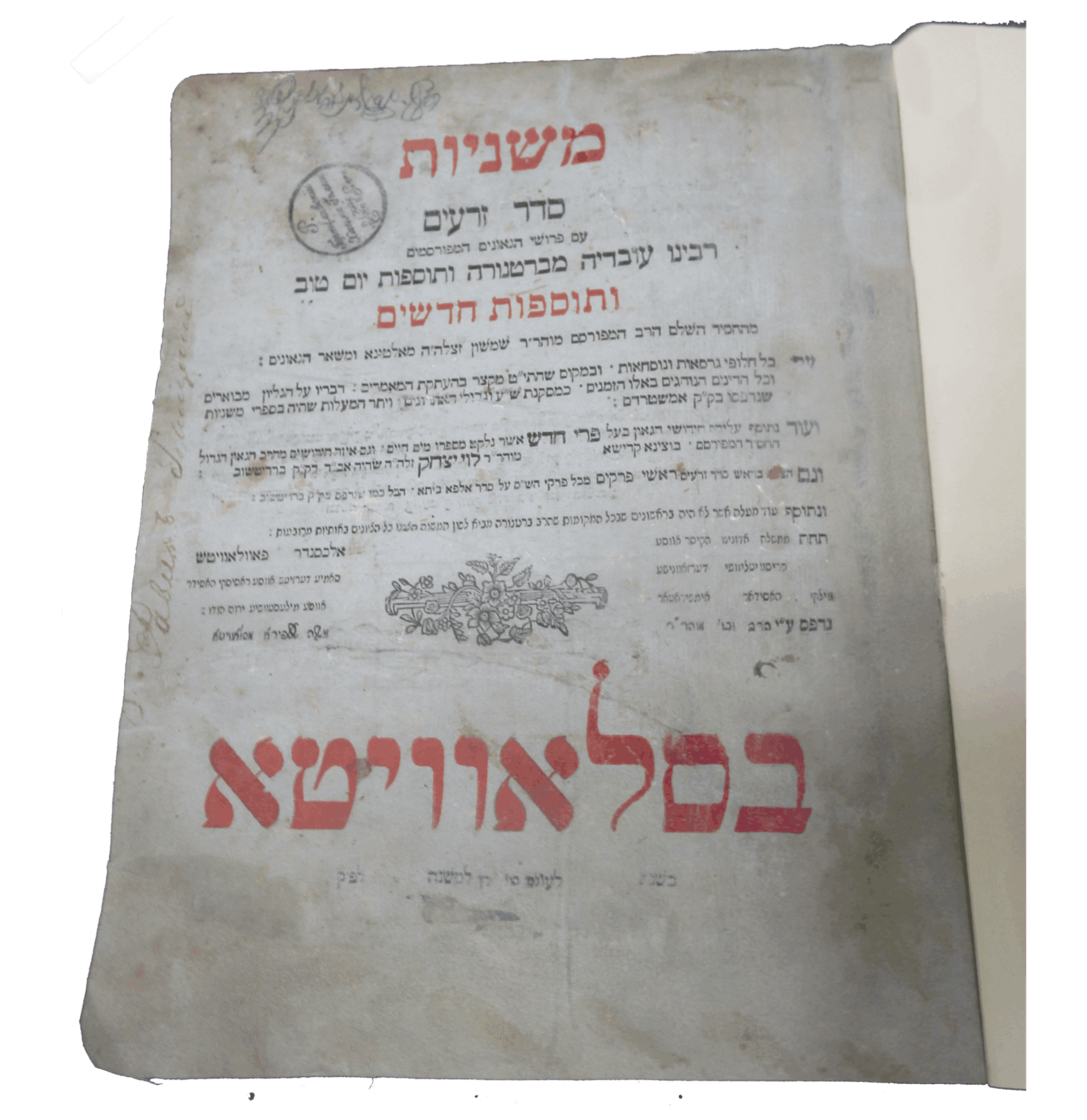 את דף השער קיבלנו כשרובו לא היה- הוספנו נייר מתאים למקור והוספנו את הכיתוב והמסגרת